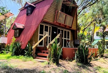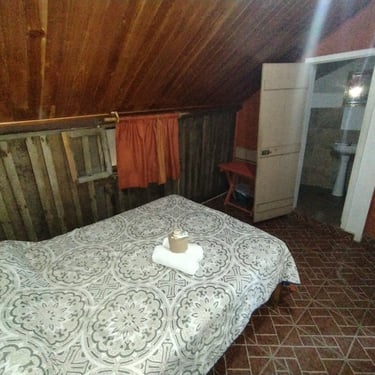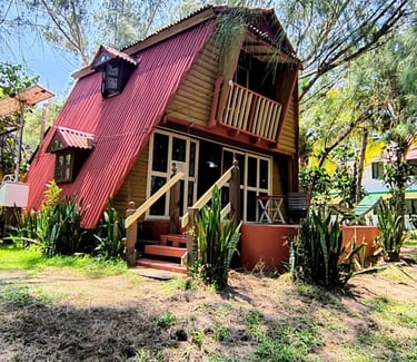 Hospédate en nuestra Cabaña 1. La opción más práctica y cómoda para 2 personas. Olvídate de compartir servicios; esta cabaña cuenta con su baño privado, ofreciéndote la independencia que buscas en tus vacaciones.