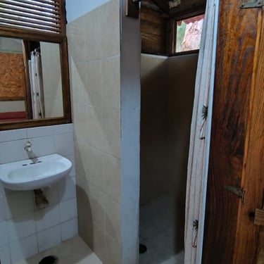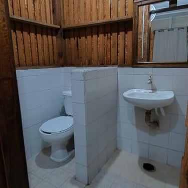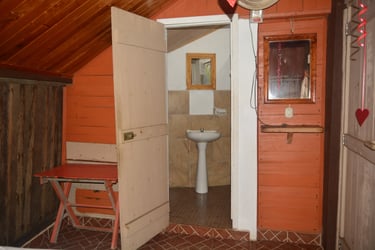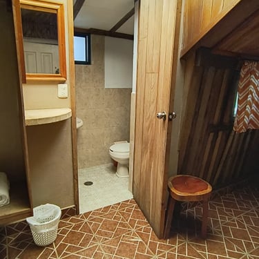 Hospédate en nuestra Cabaña 1. La opción más práctica y cómoda para 2 personas. Olvídate de compartir servicios; esta cabaña cuenta con su baño privado, ofreciéndote la independencia que buscas en tus vacaciones.