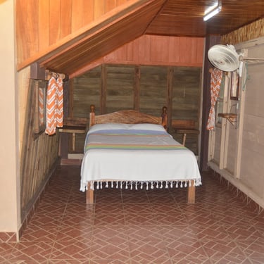 Nuestra cabaña 11 es la opción ideal para grupos pequeños o familias de hasta tres personas que buscan una estancia con estilo y confort, ofreciendo un espacio acogedor con baño privado y ventilador para garantizar un descanso fresco y exclusivo en Cabañas Don Chico.