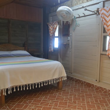 Nuestra Cabaña 3 ofrece un refugio íntimo y acogedor diseñado exclusivamente para dos personas, contando con baño privado y ventilador para asegurar una estancia fresca y llena de tranquilidad durante tu visita a Cabañas Don Chico.