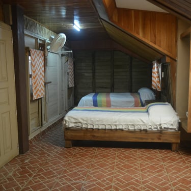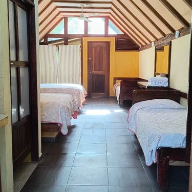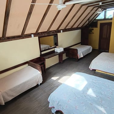 Nuestra Cabaña 4 es el refugio ideal para grupos o familias de hasta seis personas, ofreciendo un espacio amplio y acogedor que cuenta con baño privado y ventilador para garantizar una estancia fresca y llena de comodidad durante sus vacaciones en Cabañas Don Chico.