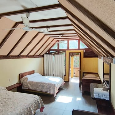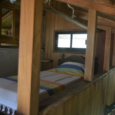 Nuestra Cabaña 12 es el refugio ideal para grupos pequeños o familias de hasta cuatro integrantes, ofreciendo una estancia cómoda y privada que cuenta con baño propio y ventilador para garantizar un descanso fresco y placentero durante su visita a Cabañas de Don Chico.