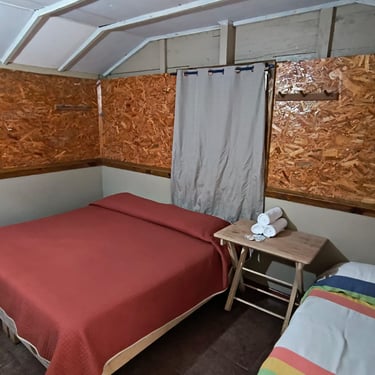 Esta amplia cabaña está diseñada para maximizar el espacio de descanso grupal y cuenta con acceso cercano a nuestra área de baños y regaderas compartidas.
