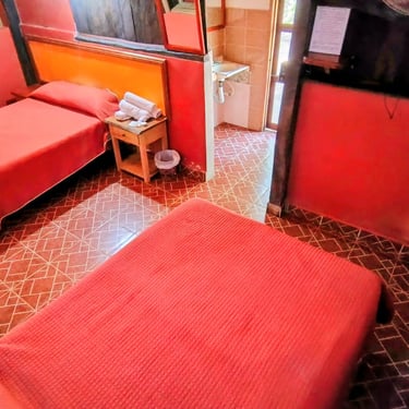 .Disfruta de la comodidad de nuestra Cabaña 7 en Tecolutla diseñada para 4 personas con una cama matrimonial y dos individuales que incluye baño privado y ventilador para garantizar un descanso fresco y acogedor tras un día de playa en Cabañas Don Chico.
