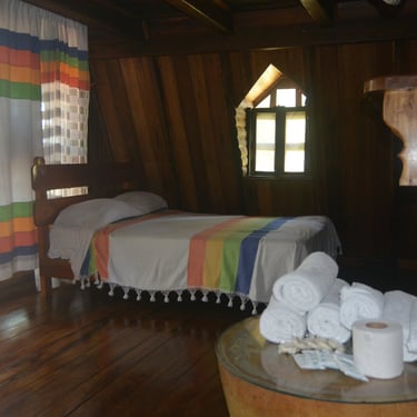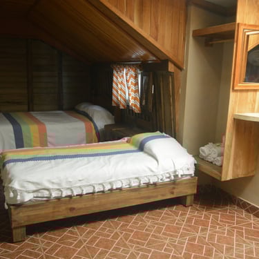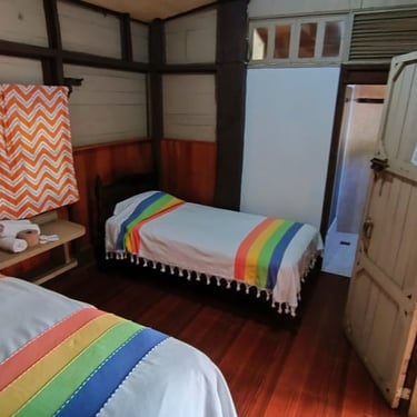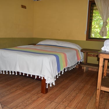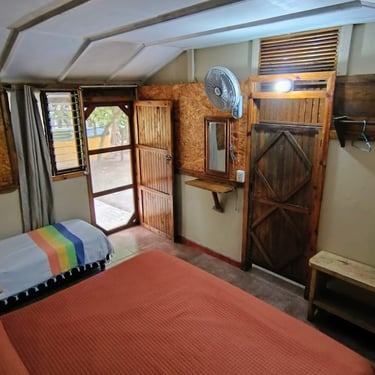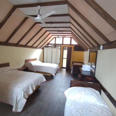 Nuestras habitaciones con capacidad para cinco personas son la solución ideal para quienes viajan en grupo y no quieren separarse. Espacios generosos y techos altos que mantienen la frescura, diseñados para que cada integrante encuentre su rincón de descanso en el corazón de Tecolutla.